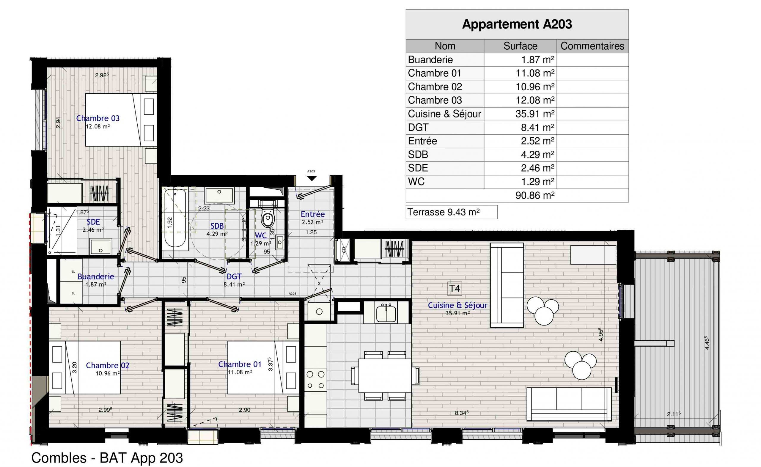 Dans une résidence de standing avec accès aux pistes de ski et aux commerces à 30m : T4 de 88.90m² – situé au 2ème et dernier étage de la résidence. Il est composé d’une entrée – de 3 chambres dont 1 avec salle d’eau – buanderie – salle de bain – séjour – cuisine et salle à manger 35.49m² donnant sur 2 balcons. 1er balcon exposé Nord et le second balcon exposé Est.