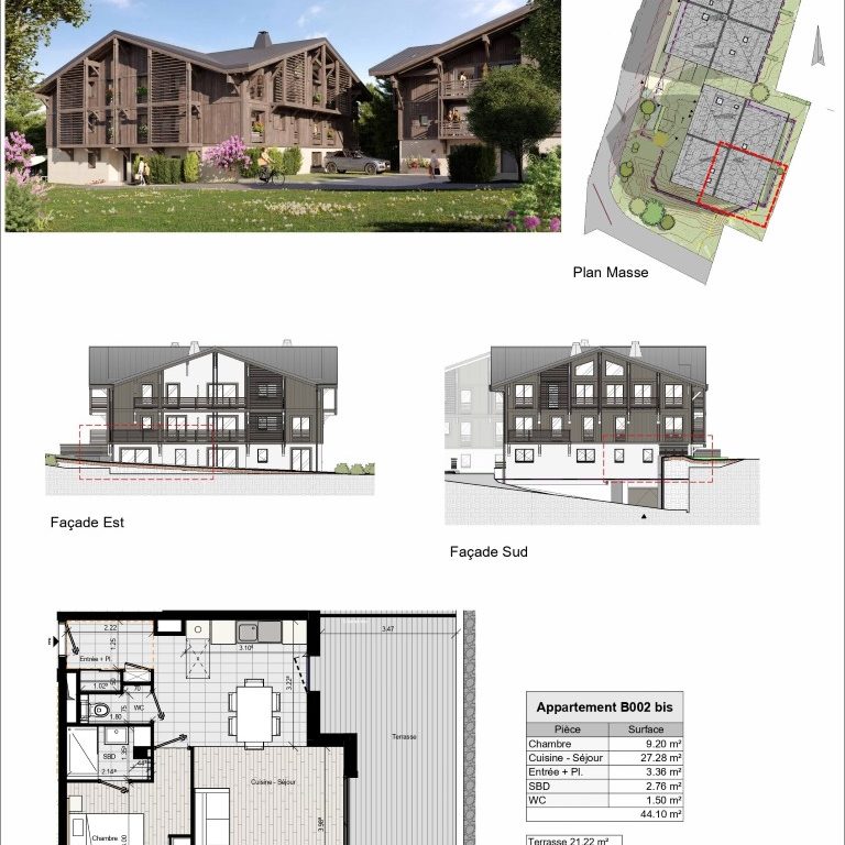 Dans une résidence de standing avec accès aux pistes de ski et aux commerces à 30m : Situé au Rdc de la résidence – vous bénéficierez d’une terrasse de 22 m² exposée Est. Ce T2 offre un spacieux séjour de 27 m² avec cuisine équipée. Cet appartement bénéficie d’une terrasse Est de 21m².